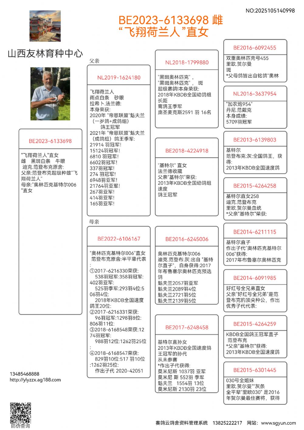 世界铭鸽 “大头彩" 直孙X直曾孙女