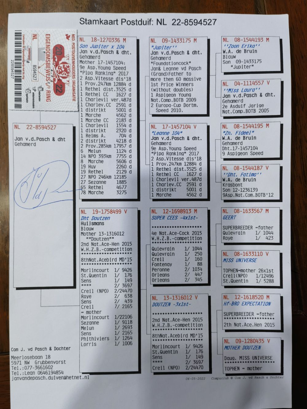 近年优秀赛绩鸽