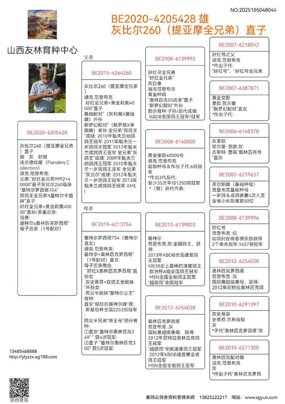 好红全兄弟×黄金莉奥40000”直孙/多重近亲: