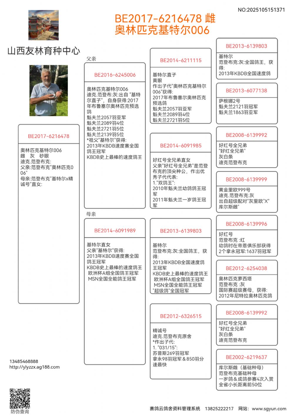 母亲:范登布克“基特尔x精诚号”直女: