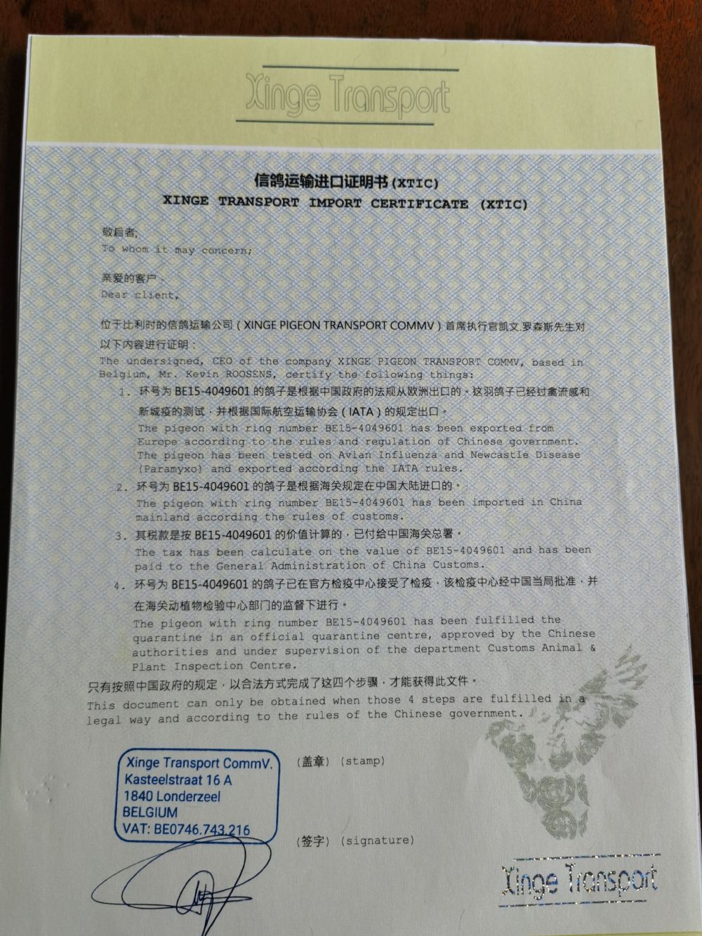 | 信鸽特征 |