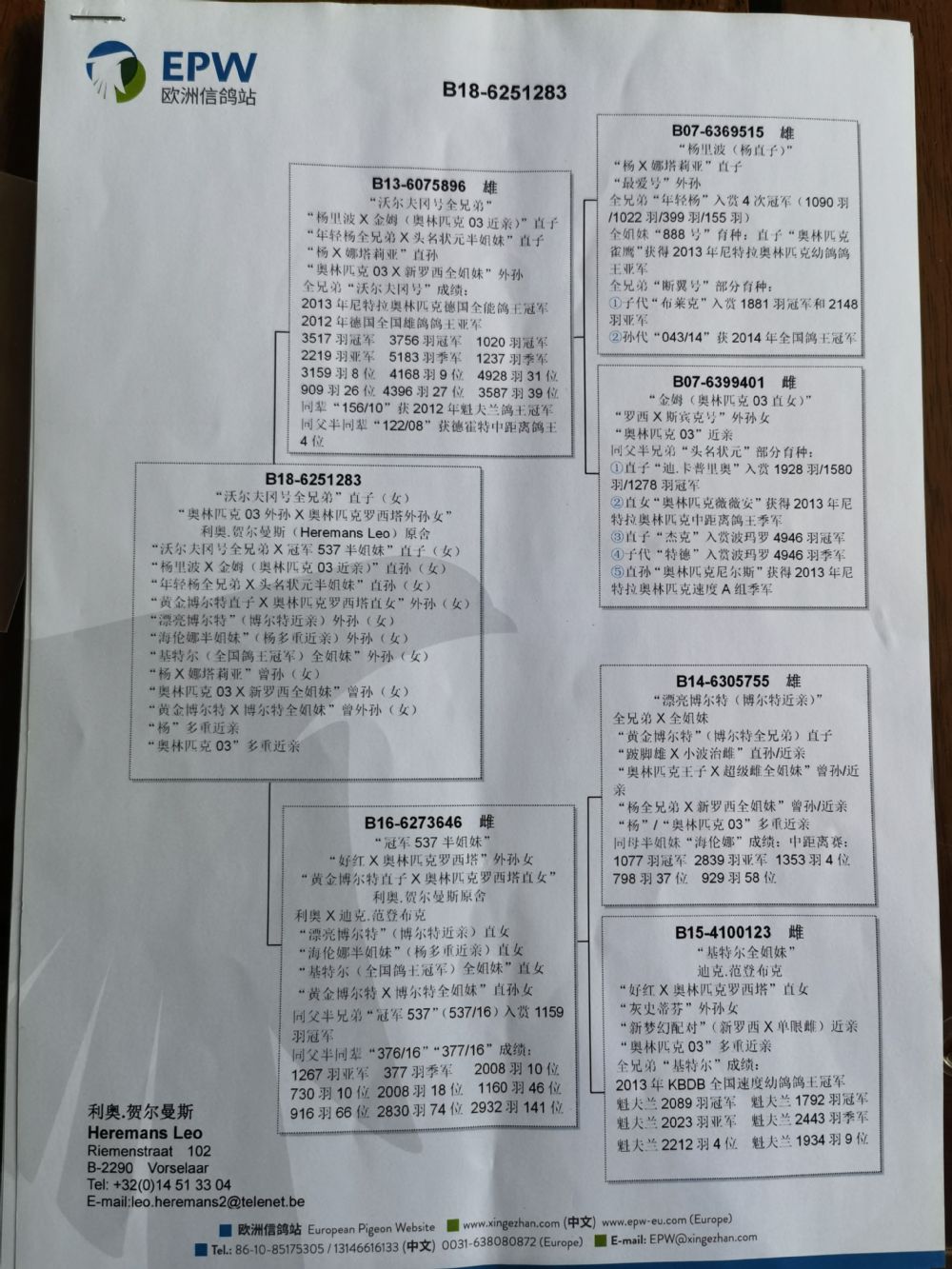 “ 基 特尔 (全国鸽王冠军 )全姐妹 ”外孙