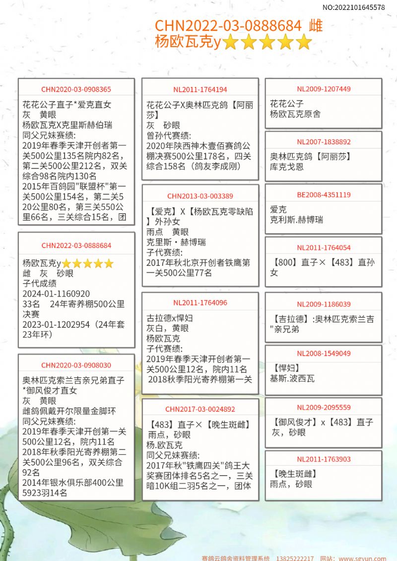 鸽 名: 克里斯赫博瑞&杨欧瓦克