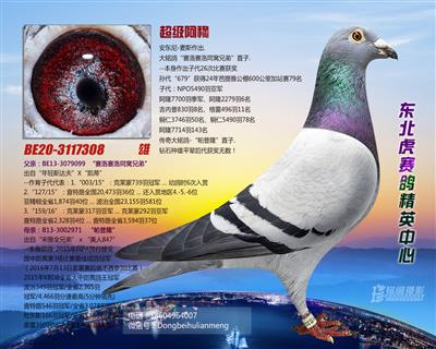超级阿穆 B20-3117308 灰 砂眼 雄 安东尼-麦斯作出. 大铭鸽“赛洛赛洛同窝兄弟”直子. 传奇大铭鸽-“帕普隆”直子. 钻石种雄平辈后代获奖无数!