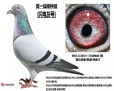 第一镇舍种鸽 父:B06-3008003 鲁迪 2013年KBDB长距离鸽王一岁鸽(2场比赛)全国冠军超级罗密欧之父亲 2014年比利时图勒国家赛11707羽总冠军B13-3056024父亲 本身获: 亚精顿407羽 4名、 亚精顿2401羽18名、 亚精顿5134羽28名, 图尔162羽8名、 图尔2791羽76名, & |
