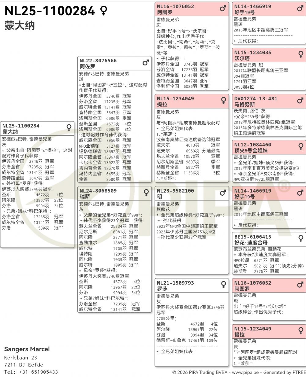 ~3代后代:至少7个全国鸽王冠军&17个全国/NPO冠军
