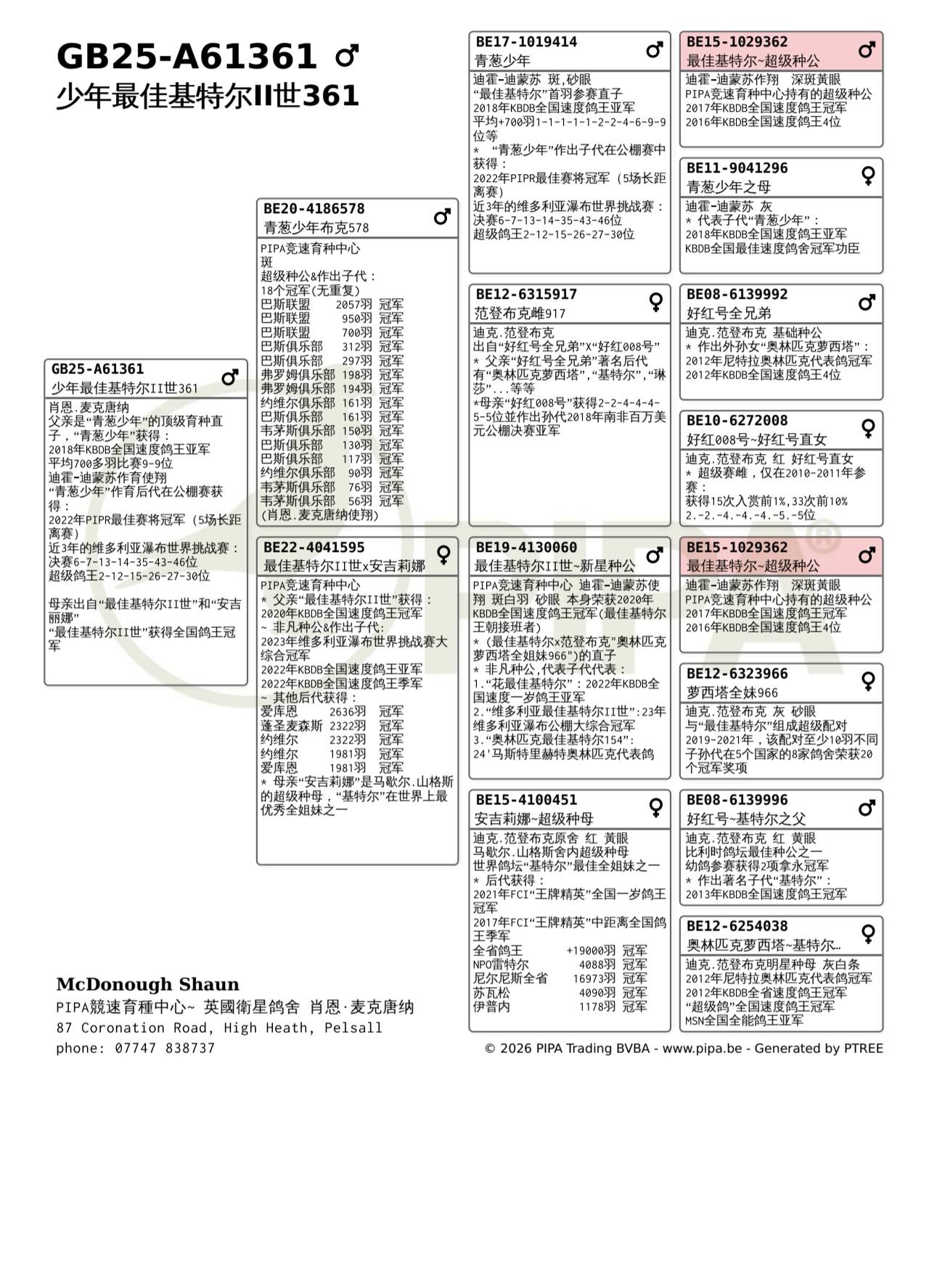 5项冠军...6次仅落后同舍鸽…PIPA竞速育种中心新超级种鸽