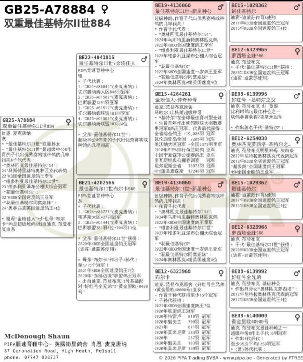~当代“最佳基特尔”鸽系头号种鸽&作育子代出优秀赛将或种鸽的几率很高!