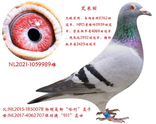 【照片制作中,通常会使用PHOTOSHOP的图片翻转功能,造成视觉上足环位置的颠倒(左右脚互换),鸽子足环的位置以实物为准,照片不能作为参考依据。】