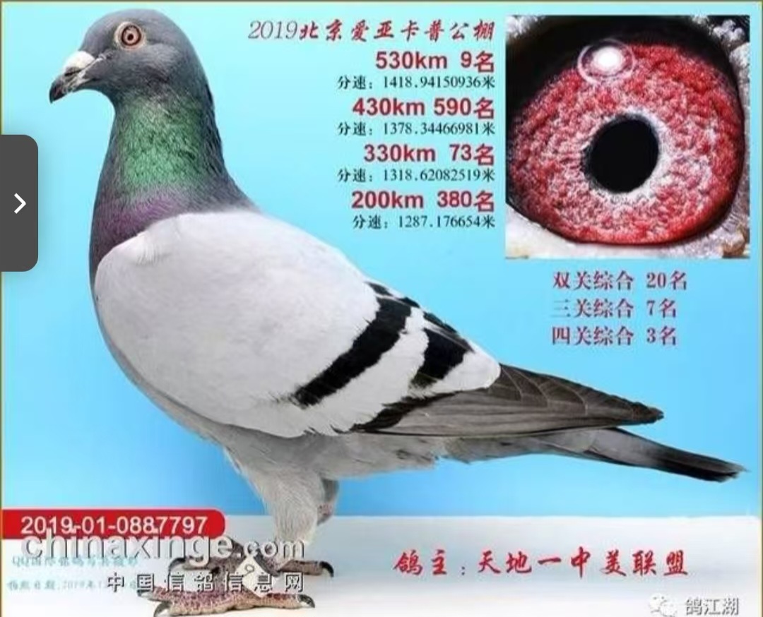 2019年全弟北京爱亚卡普530公里9名,四关鸽王季军,一百万拍卖成交 |