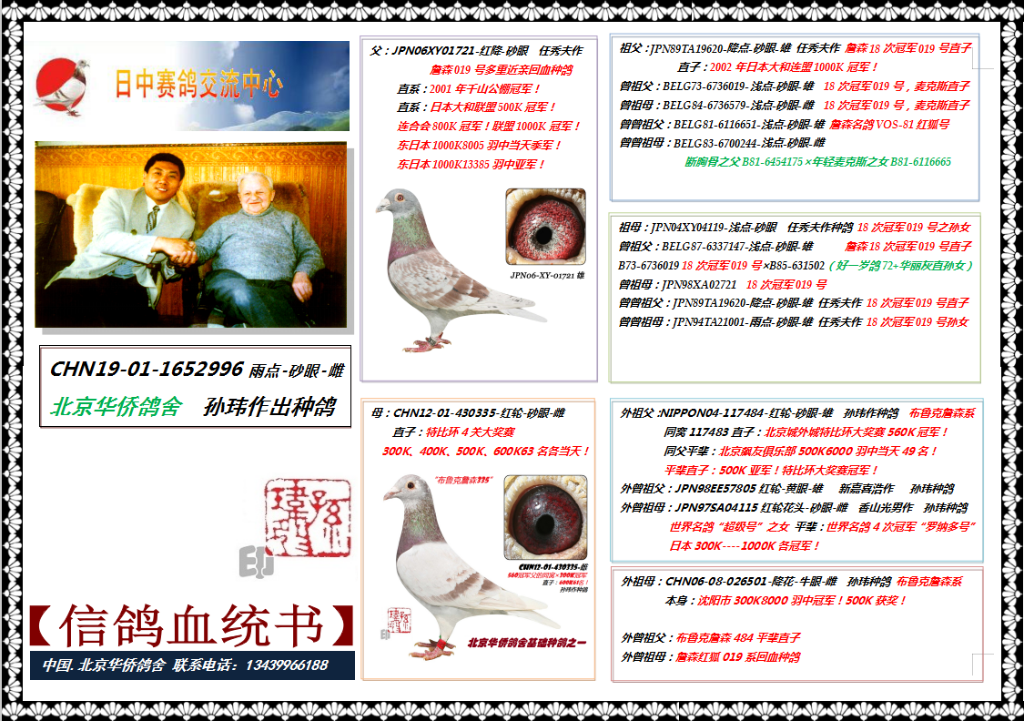 华侨赛鸽交流中心 联系人:孙玮 15201372598 13439966188 18614018019