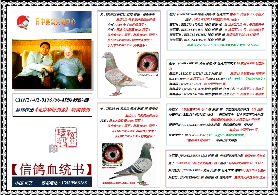 华侨赛鸽交流中心 联系人:孙玮 15201372598 13439966188 18614018019