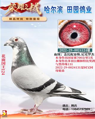 2022-29-0024124 本身作出国家赛700公里5名 本身作出多羽公棚和特比奖鸽 与黑珍珠131 2022-29-0024131是同父同母姐弟 家族后代发挥众多