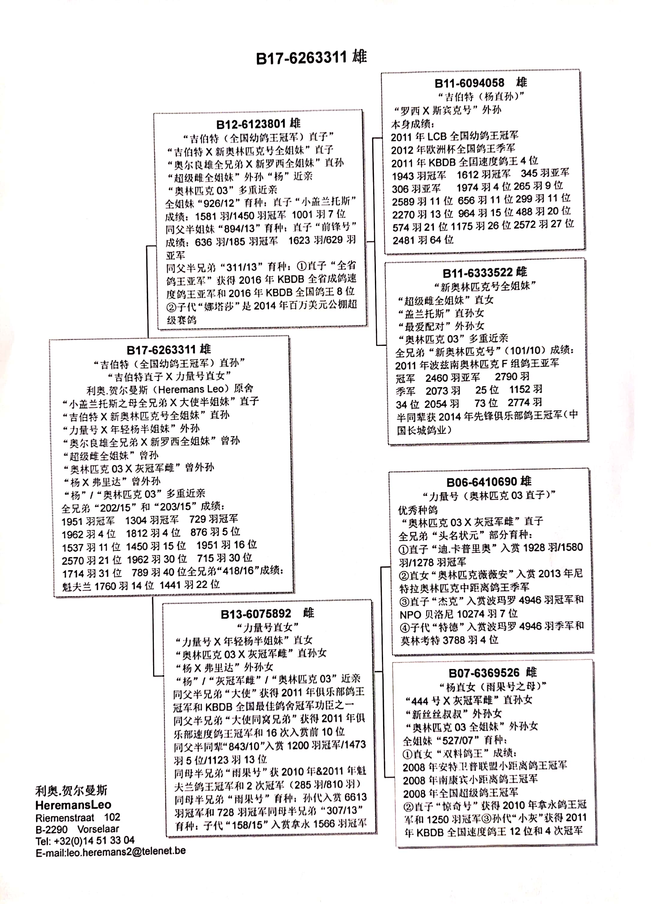 母亲“灰冠军雌”入赏拿永3262羽冠军和魁夫兰2960羽冠军