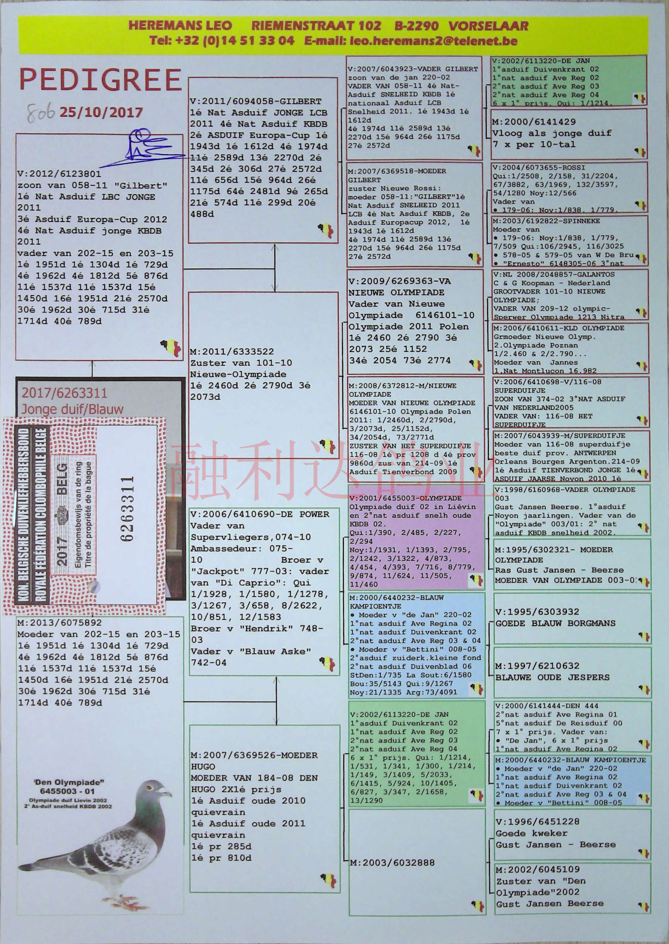 父亲“奥林匹克03”成绩:2002年里文奥林匹克速度代表鸽