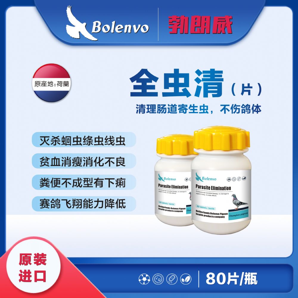【功能与主治】 本品为新型高效驱虫药,能迅速杀灭赛鸽体内蛔虫,涤虫及毛细线虫。适应于赛鸽飞翔力降低,贫血,消瘦,消化不良,羽毛脱落,粪便不成型,下痢等。