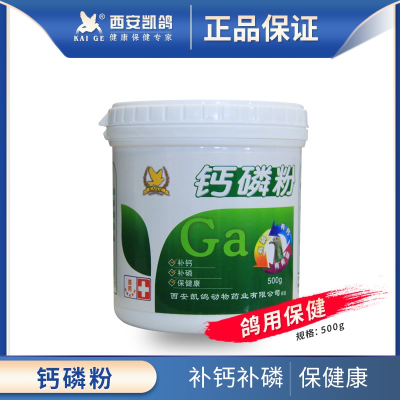【商品名称】钙磷粉 【规 格】500g/瓶 【主要成分】本品由生物多肽钙、磷、多种矿物质、维生素A、维生素D3、维生素E、氨基酸、大蒜素等组合而成,补充钙磷,易于吸收,增强体质,效果显著。 【作用用途】 为赛鸽提供充足的生物多肽钙、磷,多种维生素,矿物质元素,氨基酸等。 增进食欲,维持新陈代谢正常,预防酸中毒。 增强体质,促进羽毛、骨骼、肌肉、体格的健壮发育。 提供换羽营养,缩短换羽时间,加快换羽,增强羽毛羽质、韧度、光泽度、粉质与抗水性能。 对成长慢、体质差、落翅、软骨病、及蛋壳薄等症状有特效。 【用法用量】(本品配有量取小勺,每一平勺10g)拌入饲料中混匀后供鸽子自由食用。 幼鸽:出生7天以后,每天每羽1-2g使幼鸽更加健壮,换羽壮。 种鸽:配对前两周,每天2-3g,种蛋品质更佳,雏鸽健壮。 赛鸽:比赛前两周,每天2-3g,增强体能、耐力;归巢后,每天2-3g,快速恢复体能。 【注意事项】本品由多种营养物质组合而成,可长期使用。