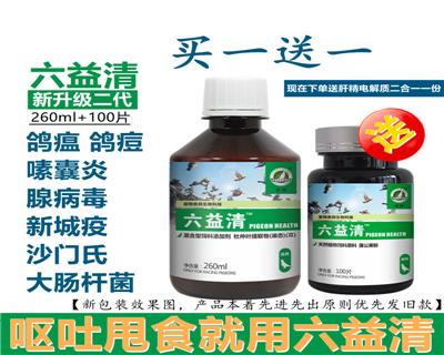 六益清 六疫清:腺病毒、新城疫、鸽瘟、嗉囊炎、鸽痘、沙门氏菌