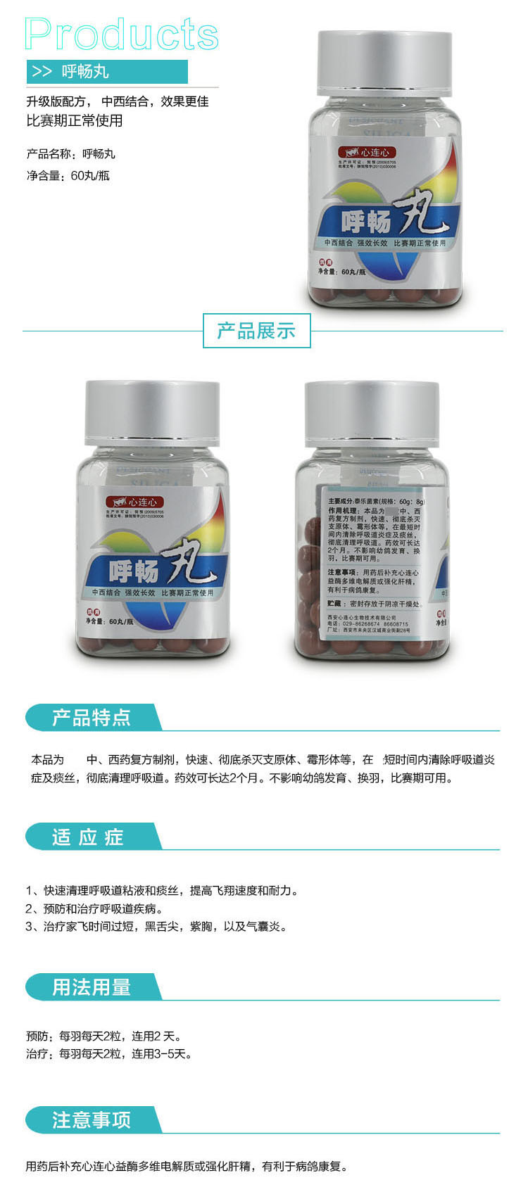呼畅丸 快速清理呼吸道粘液和痰丝,提高飞翔速度和耐力 |