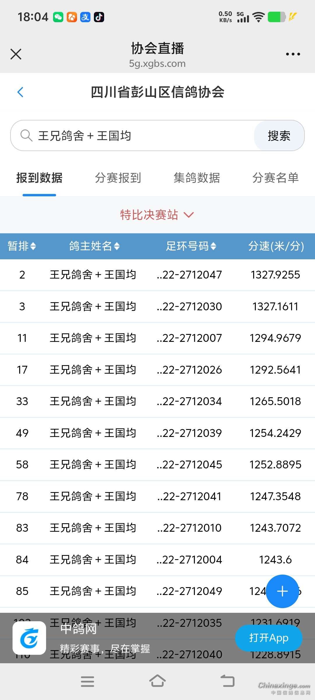 没想到这两只鸽子落下以后有点害怕的样子,耽误了近一分钟才进棚。打开网络看到是冠亚军,但是它们没有及时进棚的表现让我预感最终的冠军可能不会是我,果然三分之后,冠军刷新了,是向伟大哥。他的分速比我高了0.2米左右。郁闷得很,慢了他十几秒吧!