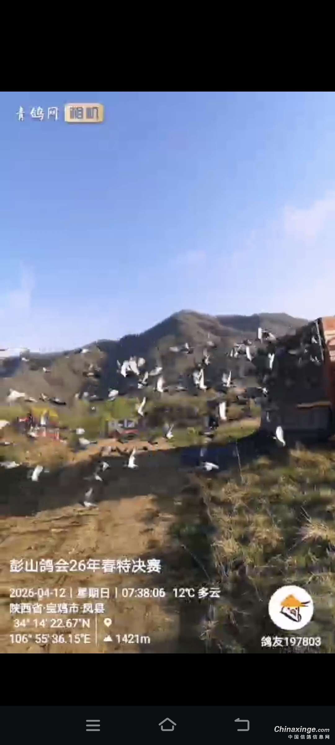第二天4月12号开笼地秦岭太阳早早升起,7:38左右顺利开笼,中途300公里左右多云伴随1-2级侧顺风,能见度也好,这对于经验丰富的养鸽人来说就能预测会飞出比较高的分速。