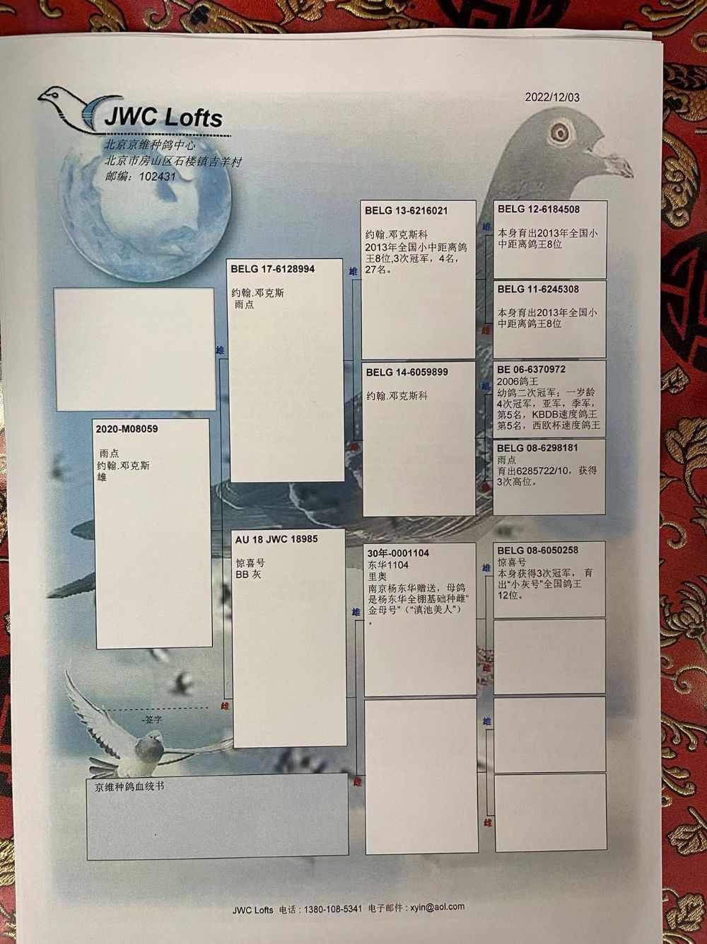 拍卖运费请加微信直接支付北京首航托运公司,微信号:13693007901,汽运及火车运输:按次数计算,每次200元,得标4羽内(含4羽)按200元计算,每增加一羽加价50元。空运:按次数计算,得标4羽内,每次按600元支付,增加一羽加价50元,如需中转加150元中转费。鸽友需自行到指定机场或可到达之长途车站取鸽。