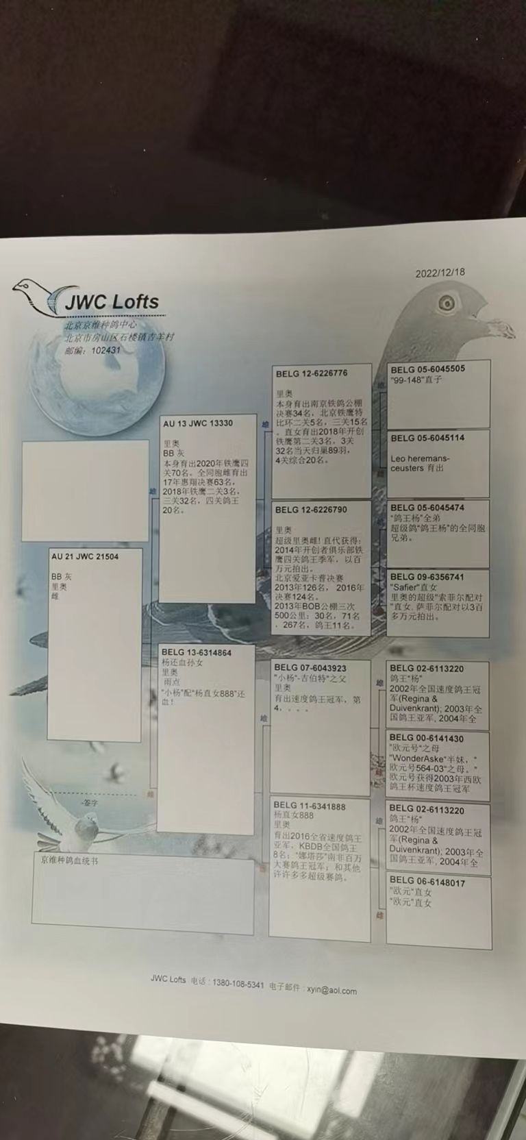 拍卖运费请加微信直接支付北京首航托运公司,微信号:13693007901,汽运及火车运输:按次数计算,每次200元,得标4羽内(含4羽)按200元计算,每增加一羽加价50元。空运:按次数计算,得标4羽内,每次按600元支付,增加一羽加价50元,如需中转加150元中转费。鸽友需自行到指定机场或可到达之长途车站取鸽。