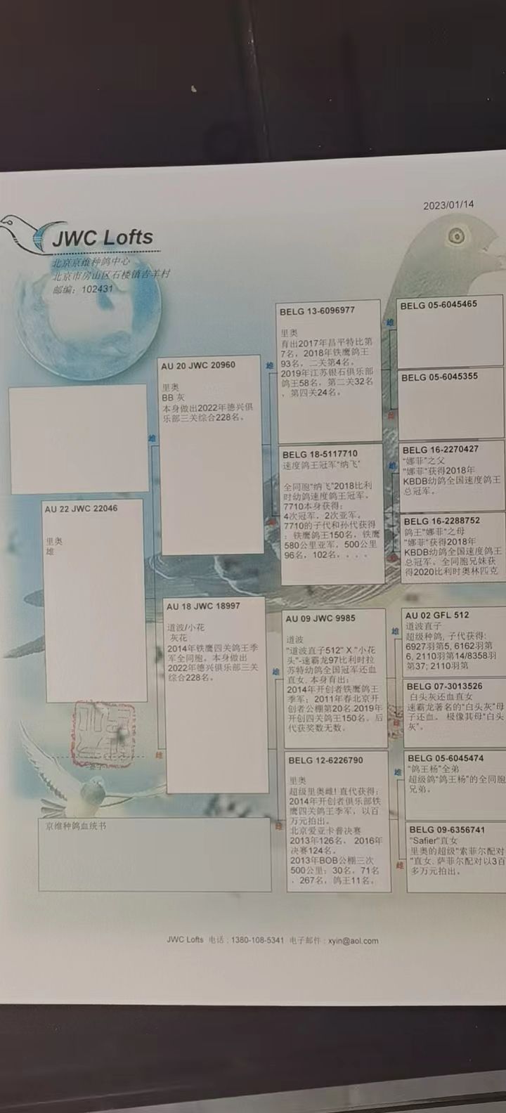 拍卖运费请加微信直接支付北京首航托运公司,微信号:13693007901,汽运及火车运输:按次数计算,每次200元,得标4羽内(含4羽)按200元计算,每增加一羽加价50元。空运:按次数计算,得标4羽内,每次按600元支付,增加一羽加价50元,如需中转加150元中转费。鸽友需自行到指定机场或可到达之长途车站取鸽。春节期间,因发货公司休假,所有拍卖鸽子正月十五之后开始发货。请广大鸽友谅解。