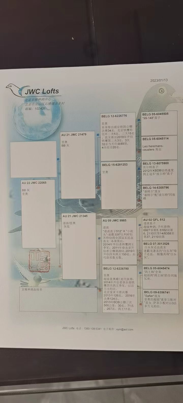 拍卖运费请加微信直接支付北京首航托运公司,微信号:13693007901,汽运及火车运输:按次数计算,每次200元,得标4羽内(含4羽)按200元计算,每增加一羽加价50元。空运:按次数计算,得标4羽内,每次按600元支付,增加一羽加价50元,如需中转加150元中转费。鸽友需自行到指定机场或可到达之长途车站取鸽。春节期间,因发货公司休假,所有拍卖鸽子正月十五之后开始发货。请广大鸽友谅解。