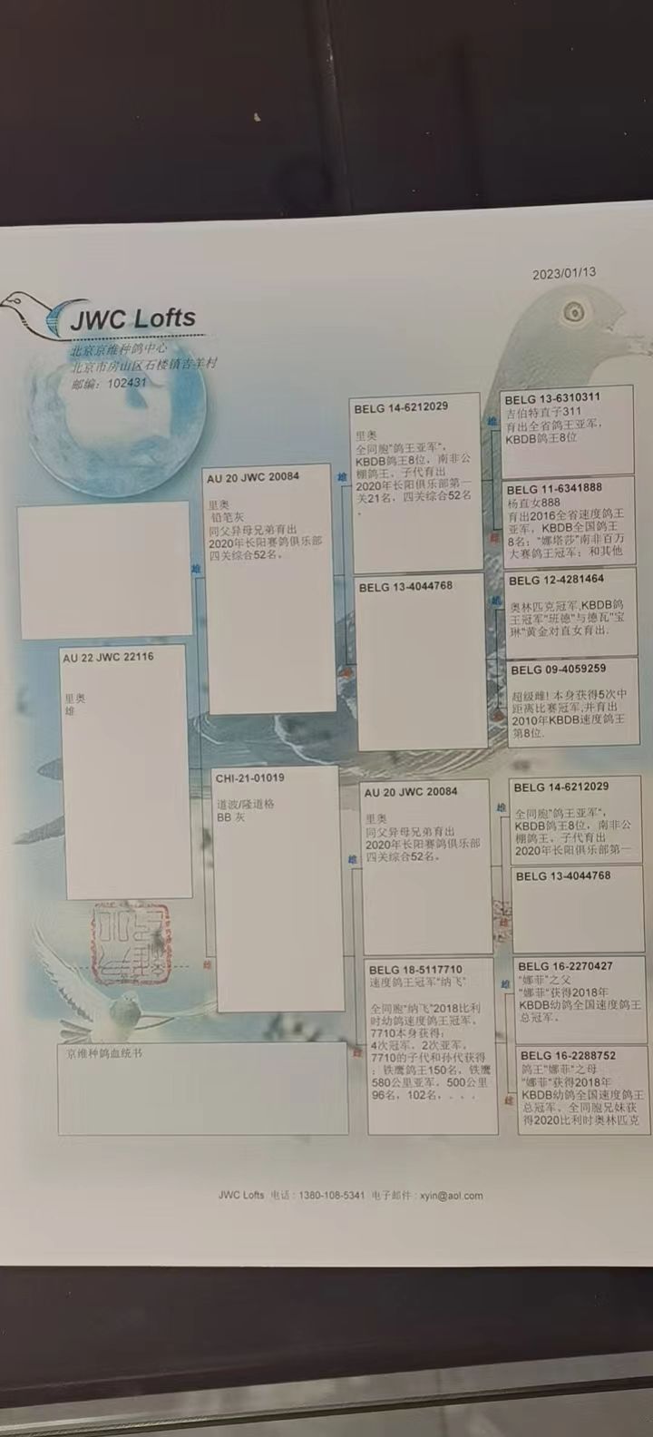 拍卖运费请加微信直接支付北京首航托运公司,微信号:13693007901,汽运及火车运输:按次数计算,每次200元,得标4羽内(含4羽)按200元计算,每增加一羽加价50元。空运:按次数计算,得标4羽内,每次按600元支付,增加一羽加价50元,如需中转加150元中转费。鸽友需自行到指定机场或可到达之长途车站取鸽。春节期间,因发货公司休假,所有拍卖鸽子正月十五之后开始发货。请广大鸽友谅解。