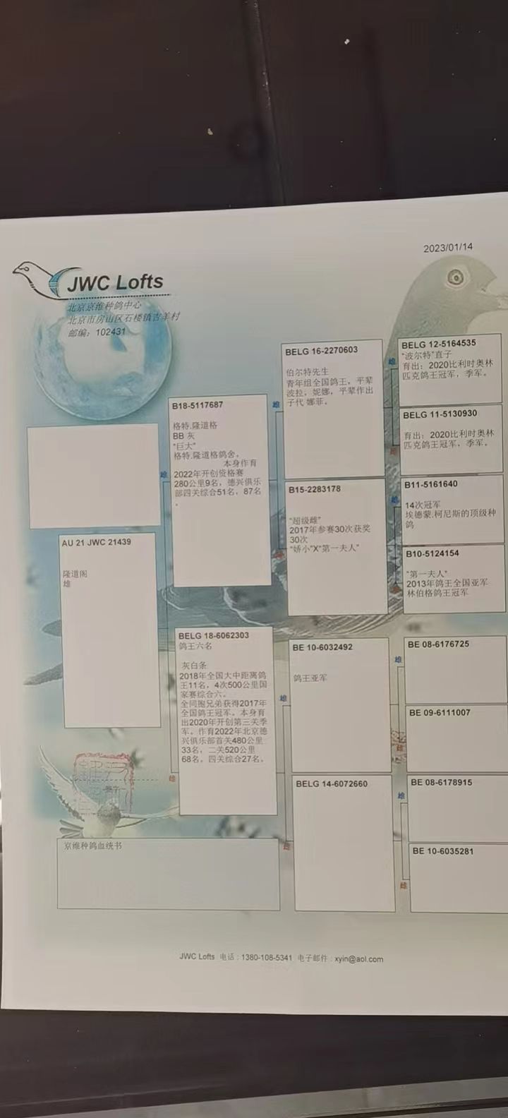 拍卖运费请加微信直接支付北京首航托运公司,微信号:13693007901,汽运及火车运输:按次数计算,每次200元,得标4羽内(含4羽)按200元计算,每增加一羽加价50元。空运:按次数计算,得标4羽内,每次按600元支付,增加一羽加价50元,如需中转加150元中转费。鸽友需自行到指定机场或可到达之长途车站取鸽。春节期间,因发货公司休假,所有拍卖鸽子正月十五之后开始发货。请广大鸽友谅解。