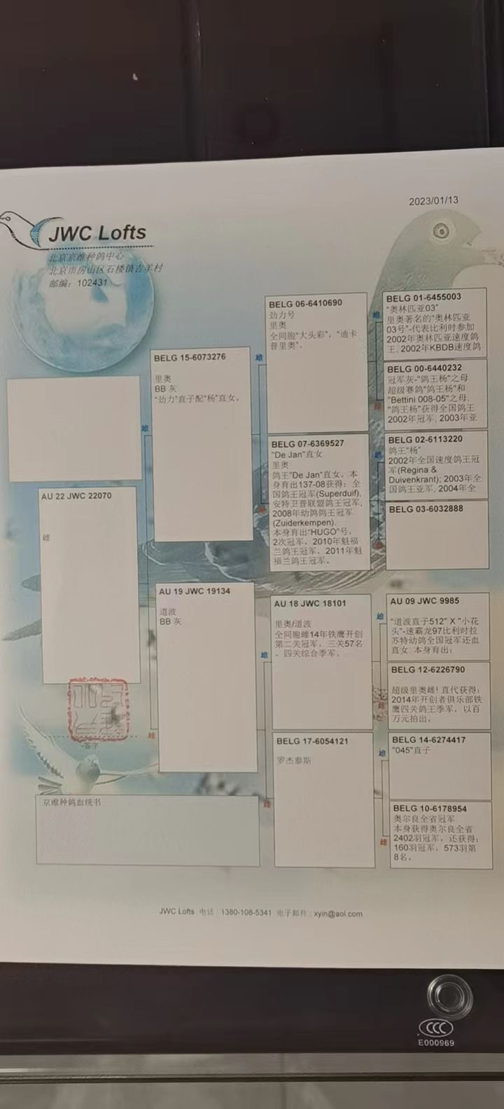 拍卖运费请加微信直接支付北京首航托运公司,微信号:13693007901,汽运及火车运输:按次数计算,每次200元,得标4羽内(含4羽)按200元计算,每增加一羽加价50元。空运:按次数计算,得标4羽内,每次按600元支付,增加一羽加价50元,如需中转加150元中转费。鸽友需自行到指定机场或可到达之长途车站取鸽。春节期间,因发货公司休假,所有拍卖鸽子正月十五之后开始发货。请广大鸽友谅解。