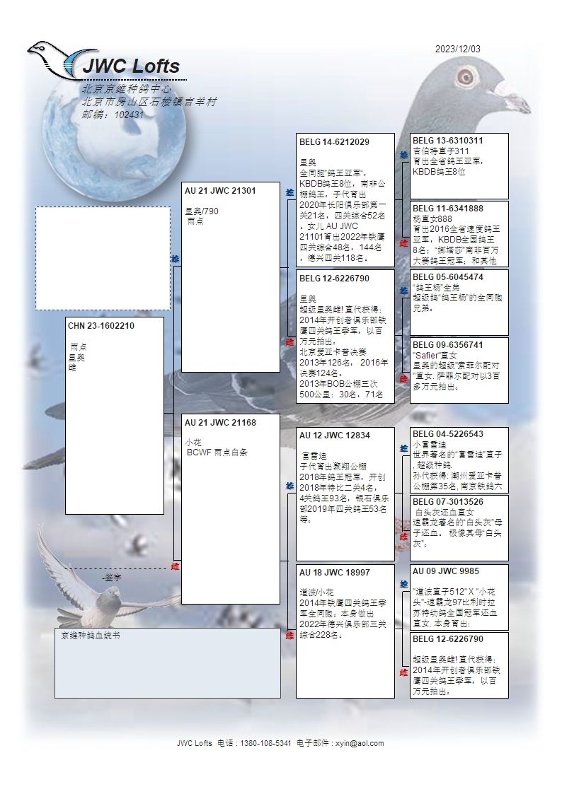 拍卖运费请加微信直接支付北京首航托运公司,微信号:13693007901,汽运及火车运输:按次数计算,每次200元,得标4羽内(含4羽)按200元计算,每增加一羽加价50元。空运:按次数计算,得标4羽内,每次按600元支付,增加一羽加价50元,如需中转加150元中转费。鸽友需自行到指定机场或可到达之长途车站取鸽。