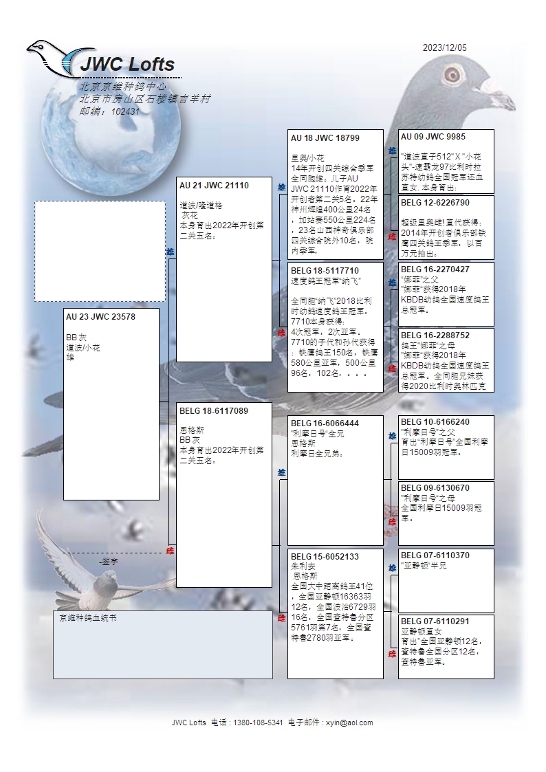 拍卖运费请加微信直接支付北京首航托运公司,微信号:13693007901,汽运及火车运输:按次数计算,每次200元,得标4羽内(含4羽)按200元计算,每增加一羽加价50元。空运:按次数计算,得标4羽内,每次按600元支付,增加一羽加价50元,如需中转加150元中转费。鸽友需自行到指定机场或可到达之长途车站取鸽。