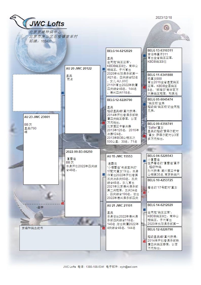 拍卖运费请加微信直接支付北京首航托运公司,微信号:13693007901,汽运及火车运输:按次数计算,每次200元,得标4羽内(含4羽)按200元计算,每增加一羽加价50元。空运:按次数计算,得标4羽内,每次按600元支付,增加一羽加价50元,如需中转加150元中转费。鸽友需自行到指定机场或可到达之长途车站取鸽。