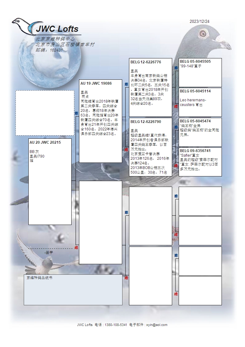 拍卖运费请加微信直接支付北京首航托运公司,微信号:13693007901,汽运及火车运输:按次数计算,每次200元,得标4羽内(含4羽)按200元计算,每增加一羽加价50元。空运:按次数计算,得标4羽内,每次按600元支付,增加一羽加价50元,如需中转加150元中转费。鸽友需自行到指定机场或可到达之长途车站取鸽。