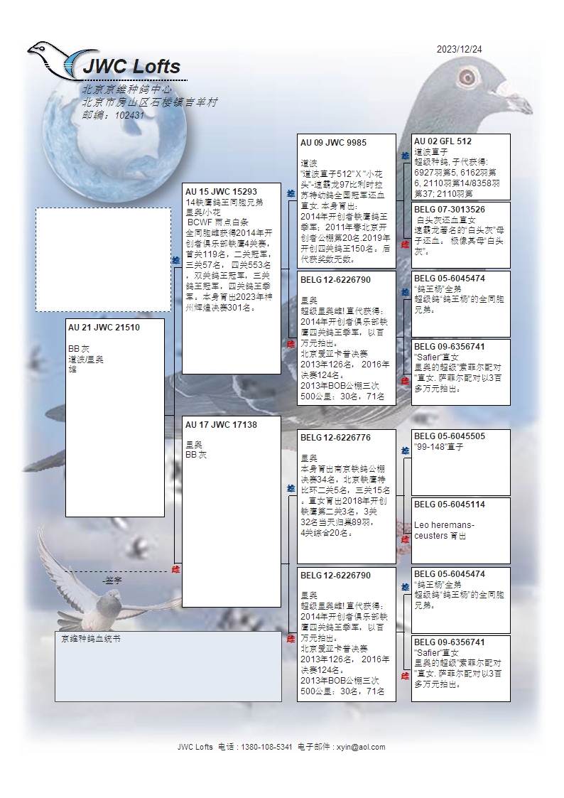 拍卖运费请加微信直接支付北京首航托运公司,微信号:13693007901,汽运及火车运输:按次数计算,每次200元,得标4羽内(含4羽)按200元计算,每增加一羽加价50元。空运:按次数计算,得标4羽内,每次按600元支付,增加一羽加价50元,如需中转加150元中转费。鸽友需自行到指定机场或可到达之长途车站取鸽。