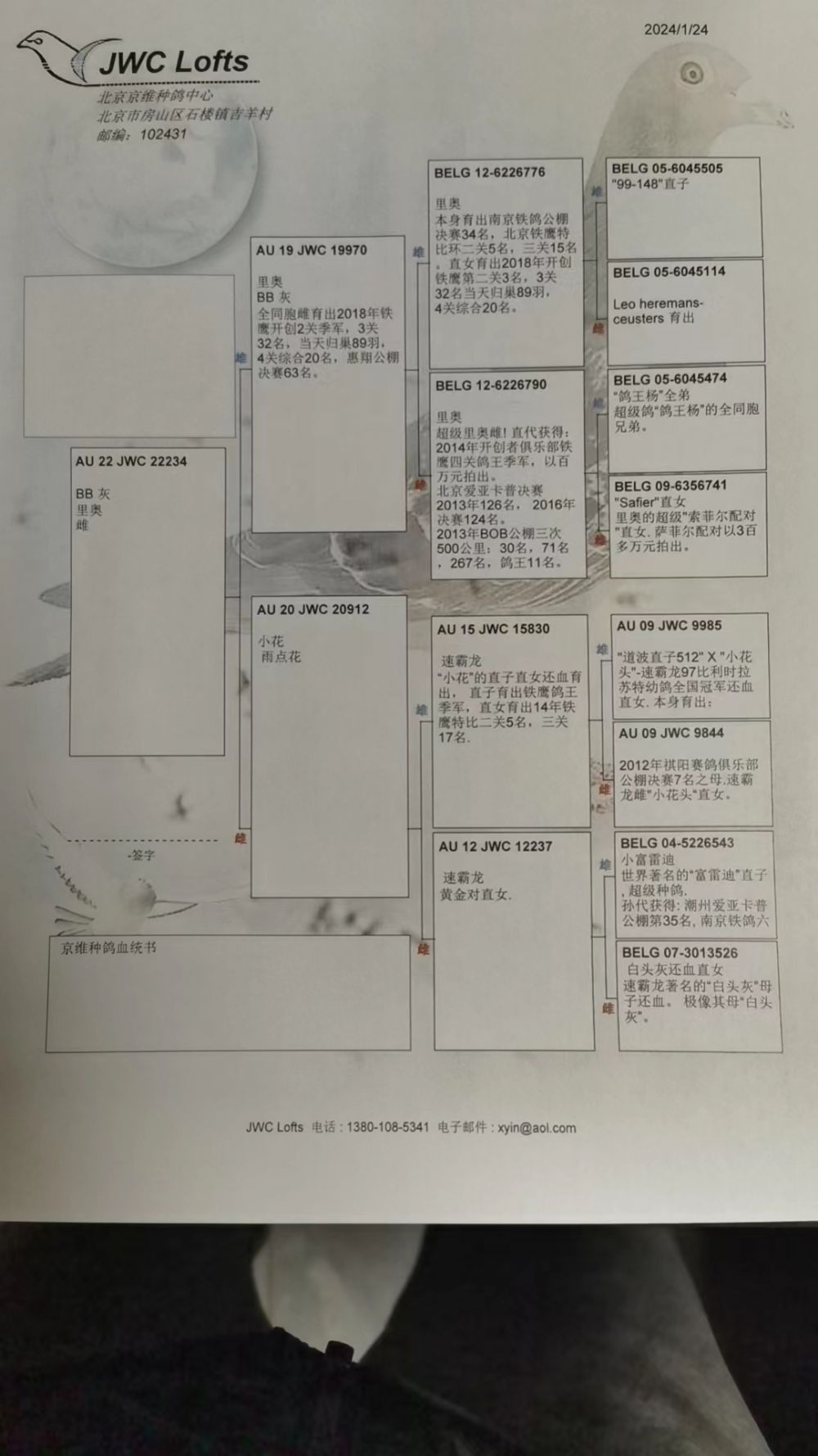 拍卖运费请加微信直接支付北京首航托运公司,微信号:13693007901,汽运及火车运输:按次数计算,每次200元,得标4羽内(含4羽)按200元计算,每增加一羽加价50元。空运:按次数计算,得标4羽内,每次按600元支付,增加一羽加价50元,如需中转加150元中转费。鸽友需自行到指定机场或可到达之长途车站取鸽。