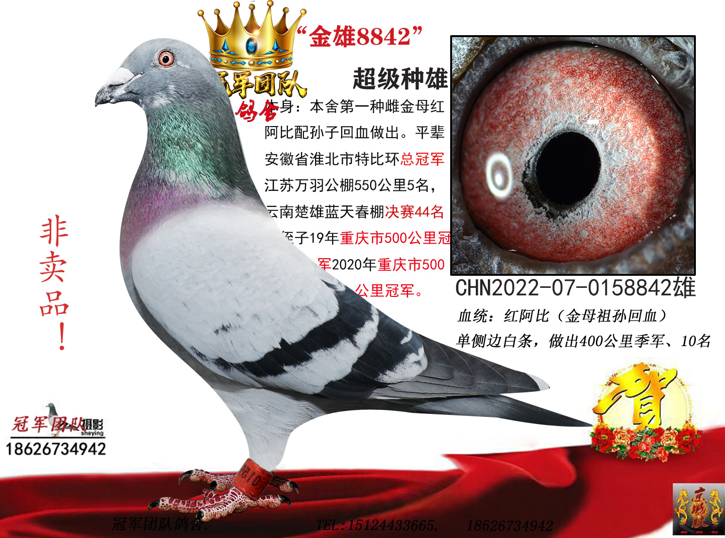 拒卖假鸽、假一赔四。成绩、血统永久保真。血统书足环卡随鸽发出。