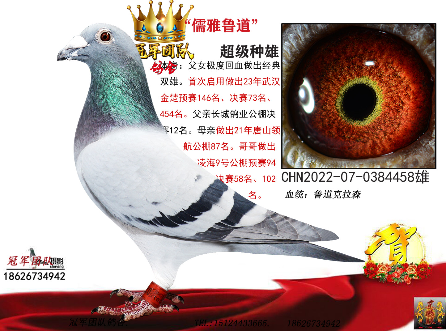 拒卖假鸽,成绩、血统永久保真。血统书足环卡随鸽发出。如假双倍赔偿。