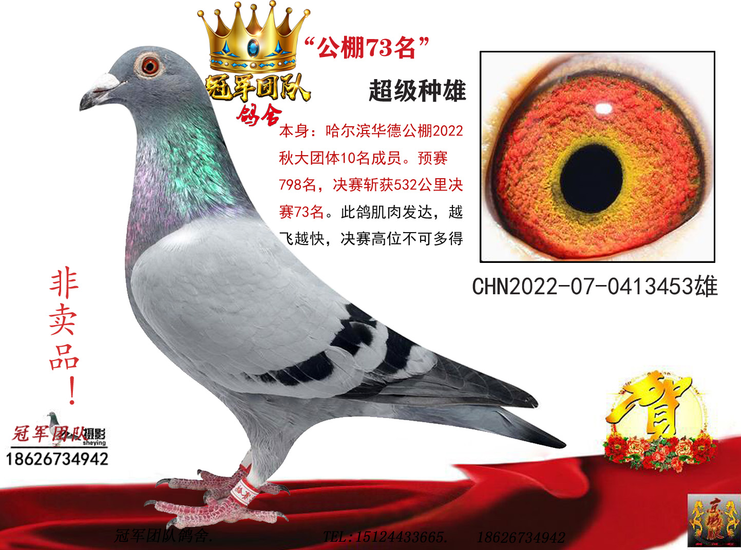 血统书足环卡随鸽发出,低价位高品质幼鸽,种赛皆宜。良心做人,所有成绩如假包换,不做虚假宣传!当年幼鸽雌雄由多年经验和同窝判断仅供参考!