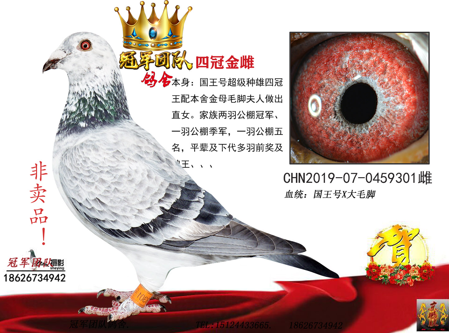 多年积攒!只卖真品,莫和假鸽比。成绩、血统永久保真。血统书足环卡随鸽发出。如假双倍赔偿。