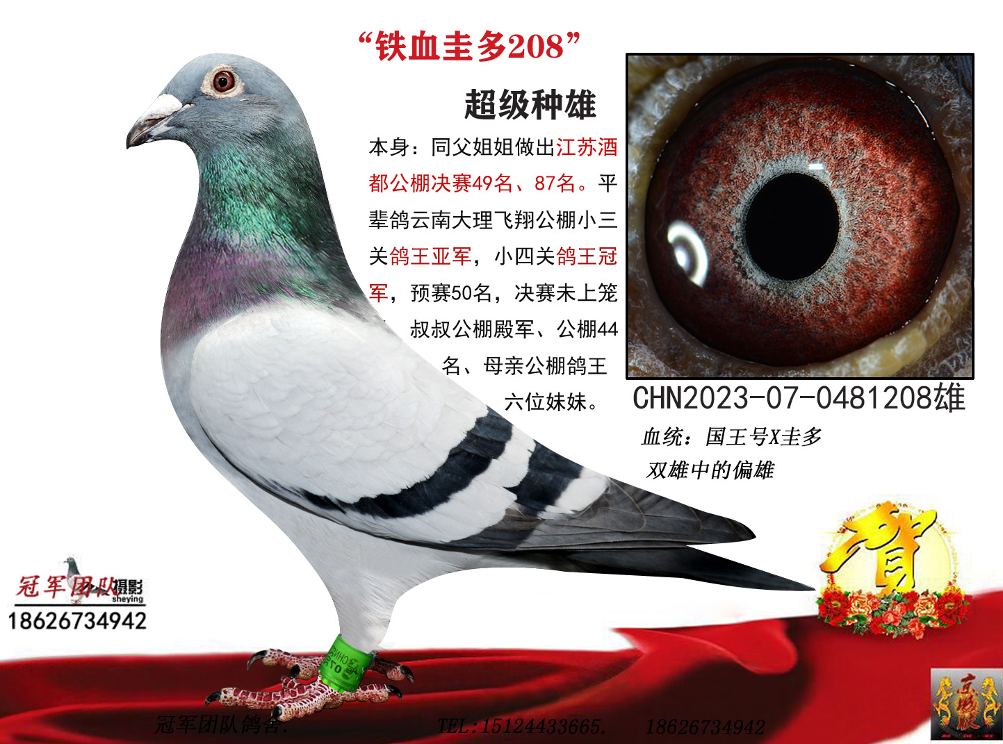 血统书足环卡随鸽发出,低价位高品质幼鸽,种赛皆宜。良心做人,所有成绩如假包换,不做虚假宣传!当年幼鸽雌雄由多年经验和同窝判断仅供参考!