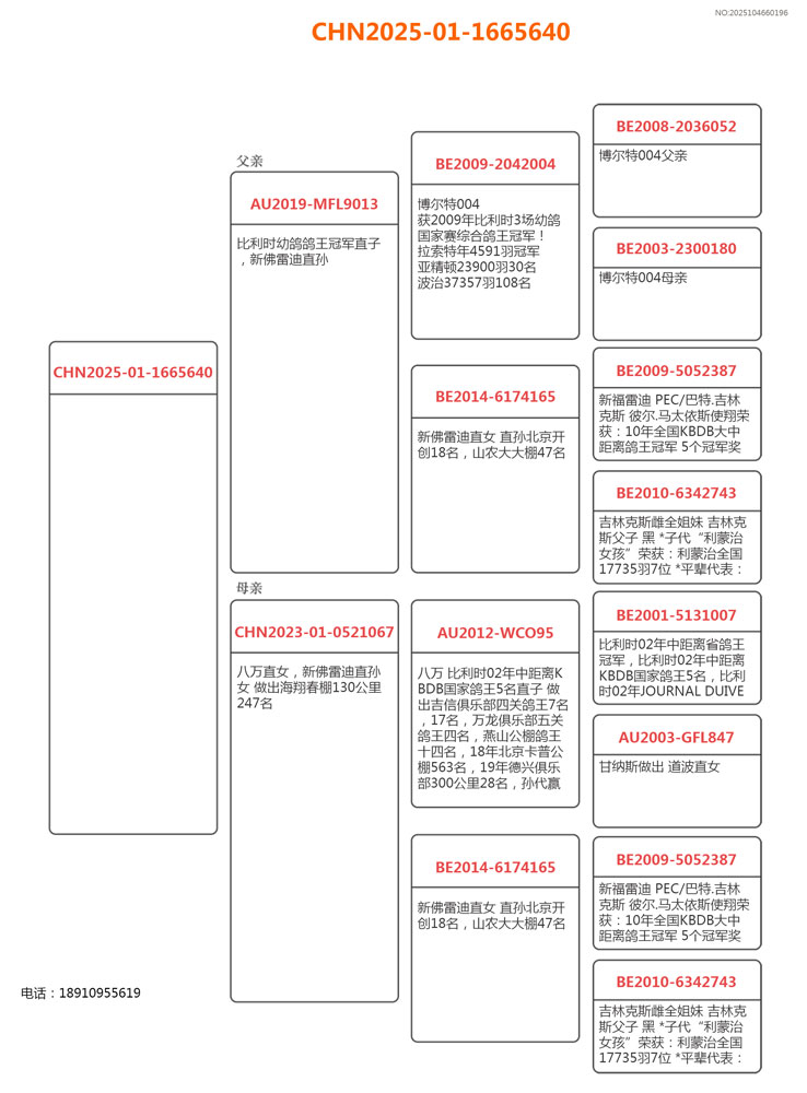 - 当前查看拍卖鸽:比利时国家鸽王冠军近亲孙640