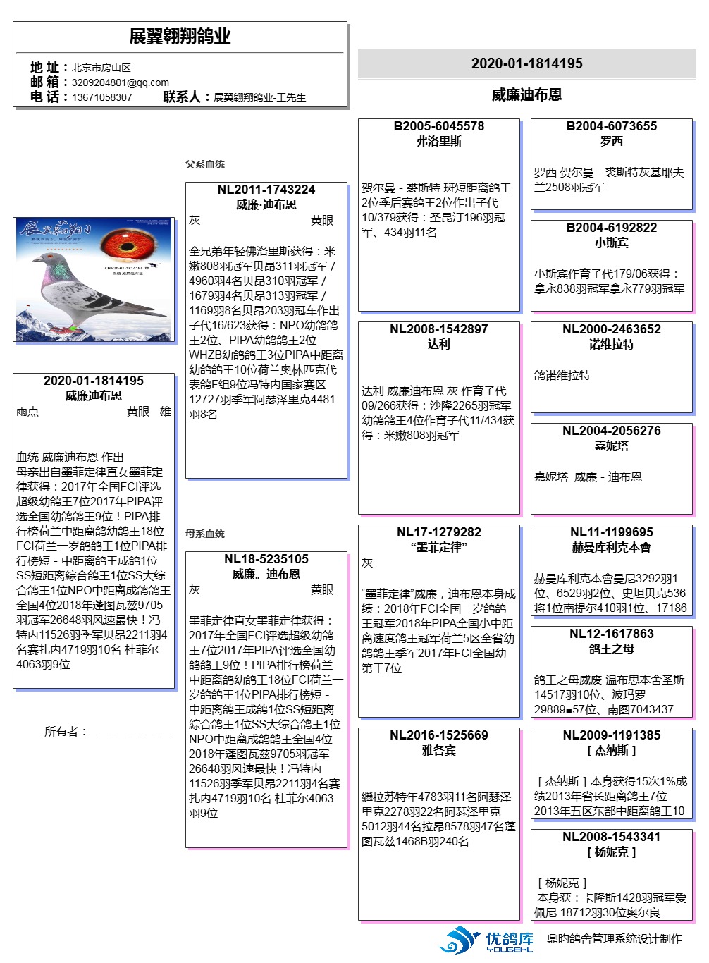 1596255 | 一不小心飞鸽王一不小心飞冠军的佛科克478 | ¥300元 | 0次 |