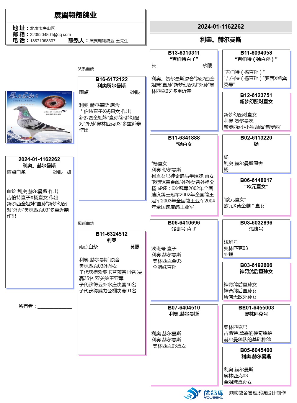 - 当前查看拍卖鸽:利奥吉伯特配鸽王杨直子作出262
