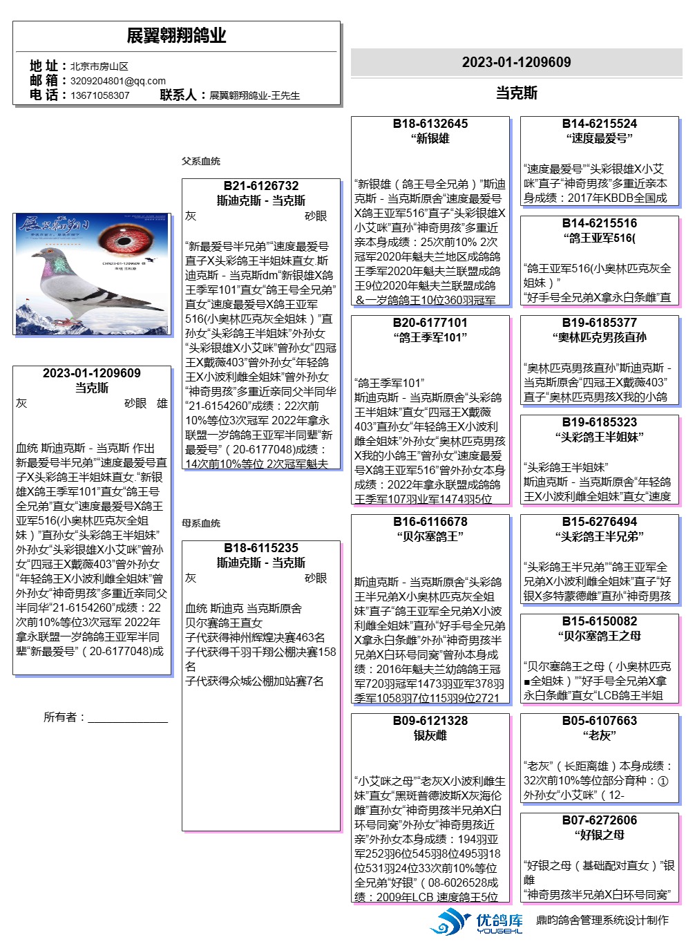 - 当前查看拍卖鸽:速度狂魔当科斯609