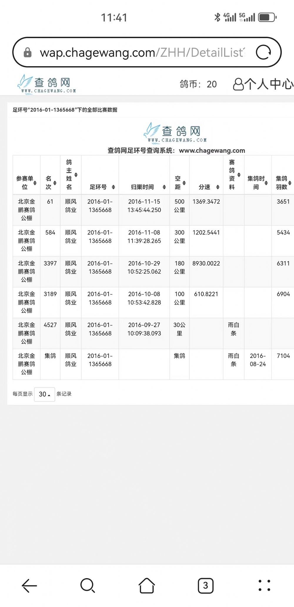 1596311 | 北京凯翔公棚三关鸽王9位 | ¥100元 | 1次 |