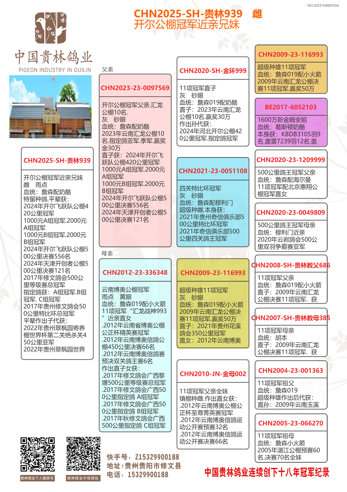 ★贵林鸽业2006年至2024年连续创下十八年冠军记录!200公里冠军.300公里冠军.400公里冠军.500公里冠军.公棚冠军.特比环冠军.三关鸽王冠军.四关鸽王冠军.大小冠军无一缺席!