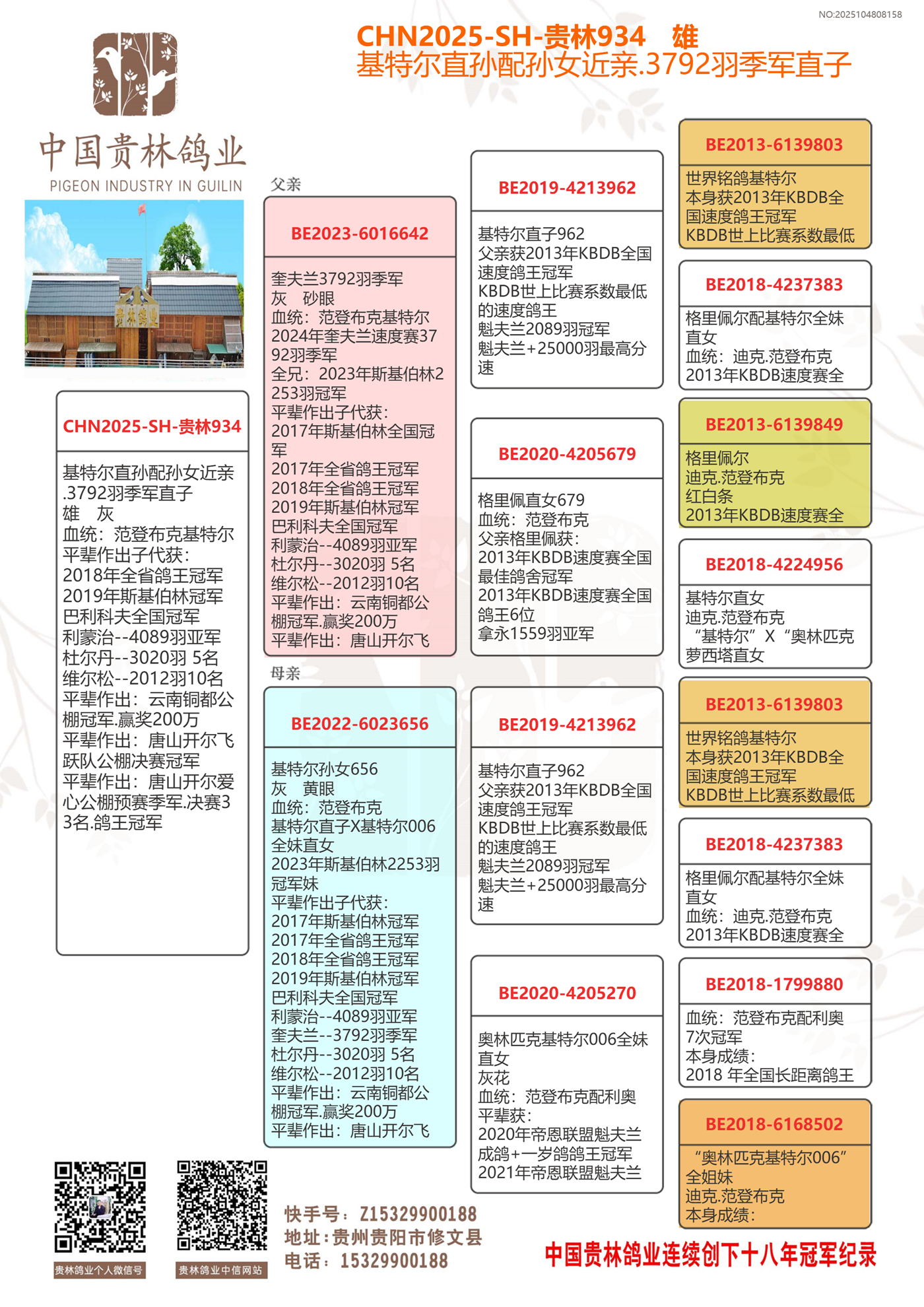 - 当前查看拍卖鸽:基特尔直孙配基特尔孙女近亲.3792羽季